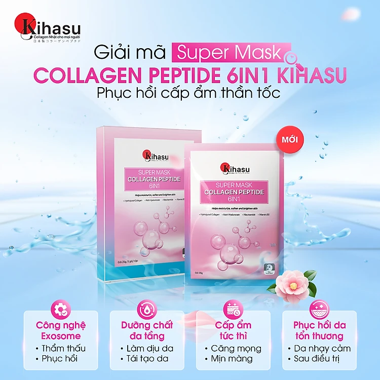 Mặt Nạ Collagen Peptide 6in1 Kihasu Công Nghệ Nhật Bản Dưỡng Ẩm Sâu, Phục Hồi, Trẻ Hóa, Sáng Da