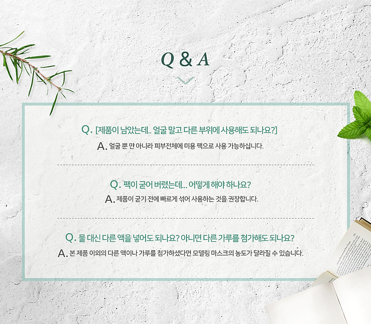 Thành phần cốt yếu: đất tảo cát! Là thành phần cơ bản quyết định chất lượng mặt nạ thạch dẻo, chứa nhiều khoáng chất giúp cung cấp dưỡng chất cho da và cân bằng da, mang lại làn da sáng mịn.