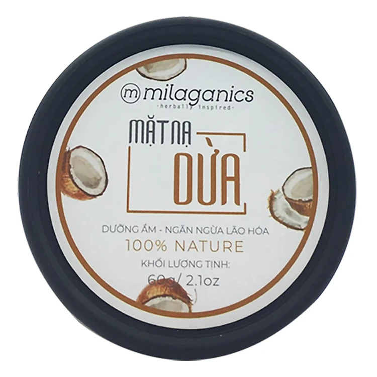 Mặt nạ dừa dưỡng ẩm, ngăn ngừa lão hoá Milaganics 60g với các thành phần thiên nhiên lành tính như: Dầu Dừa tinh khiết, dầu Cám gạo, nha đam tươi, chiết xuất cây phỉ, củ cải đường, Kaolin… được bổ sung thêm các hoạt chất dưỡng ẩm chuyên sâu như: Niacinamide, Hyaluronic acid, Vitamin E là lựa chọn hoàn hảo để nuôi dưỡng, cấp ẩm chuyên sâu cho làn da, cải thiện tình trạng mất nước, giúp da kiềm dầu và hỗ trợ điều trị mụn hiệu quả hơn.