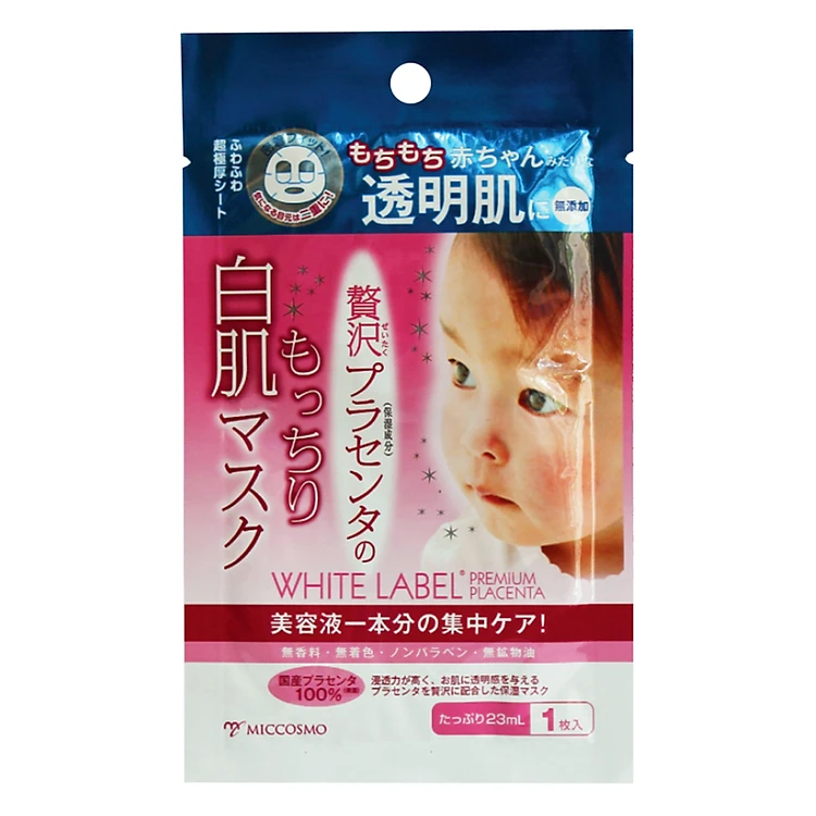 - Mặt nạ White Label có miếng siêu dày gấp 2 lần các loại mặt nạ thông thường. Bám chặt vào da, nhờ đó dưỡng chất Placenta bao bọc khắp bề mặt da, thấm sâu nuôi dưỡng làn da. Chỉ 5 phút làn da được bổ sung đầy đủ dưỡng chất.