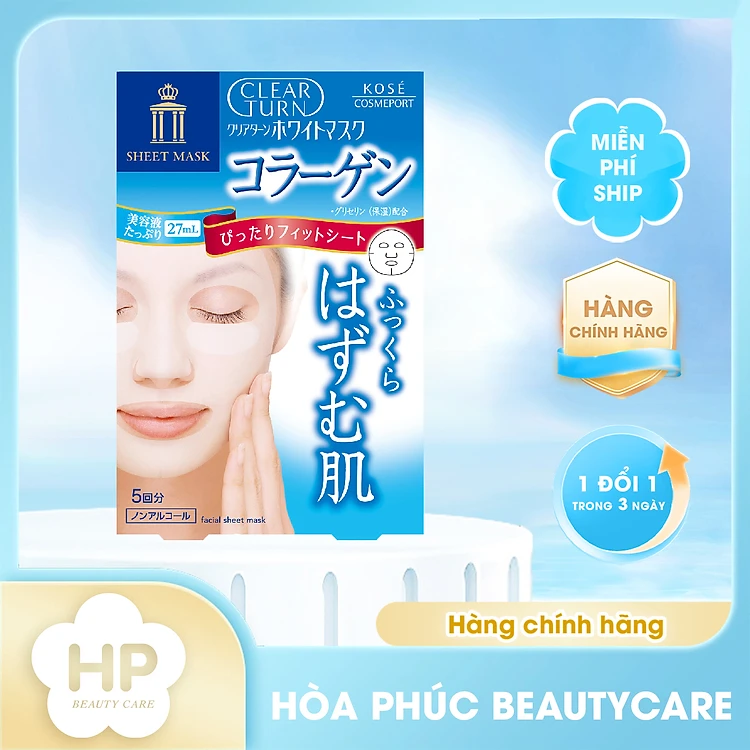 Mặt Nạ Dưỡng Trắng Collagen Kosé Softymo Clear Turn White Mask VC 5 Miếng