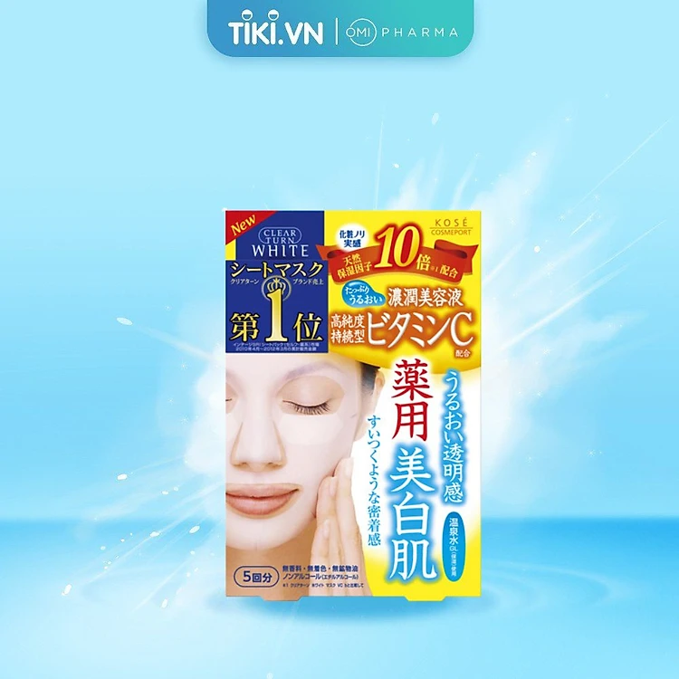 Mặt Nạ Dưỡng Trắng Da Tinh Chất Vitamin C Kose Nhật Bản Clear Turn (5 Miếng/Gói)