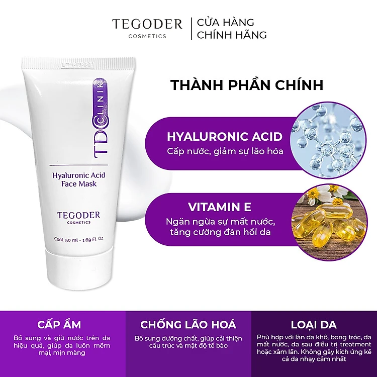 Mặt nạ Hyaluronic Acid cấp ẩm sâu, phục hồi da Tegoder Hyaluronic Acid face mask 50 ml mã 1081