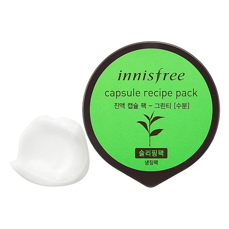 - Mặt Nạ Ngủ Cấp Ẩm Từ Trà Xanh Innisfree Capsule Recipe Pack - Greentea với chiết xuất từ trà xanh thích hợp cho da hỗn hợp thiên dầu, da bị kích ứng với ô nhiễm môi trường, da có mụn, mụn bọc nhưng không quá khẩn cấp (khẩn cấp và nhiều mụn khuyên dùng bộ Jeju Bija).