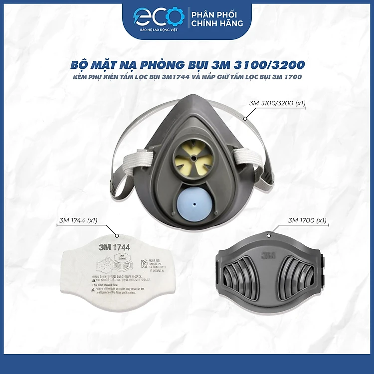 Mặt Nạ Phòng Bụi 3M 3100/3200 kèm tấm lọc bụi 3M 1774 và nắp giữ tấm lọc bụi 3M 1700