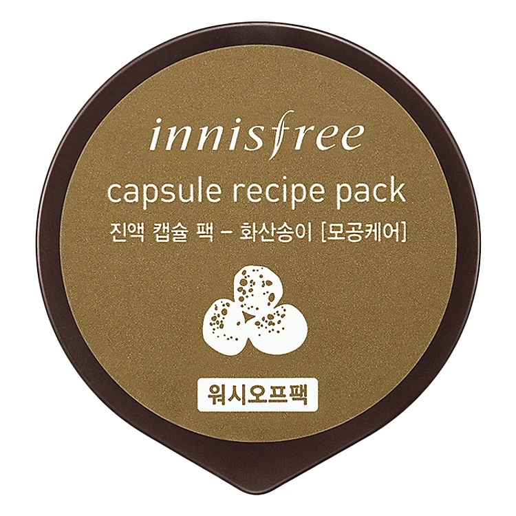 - Mặt Nạ Rửa Chăm Sóc Lỗ Chân Lông Từ Tro Núi Lửa Innisfree Capsule Recipe Pack - Volcanic Cluster chiết xuất từ 30,000ppm đất sét tro núi lửa tại đảo Jeju, có tác dụng làm sạch và se lỗ chân lông, kiểm soát bã nhờn và ngăn ngừa hình thành mụn trên da.