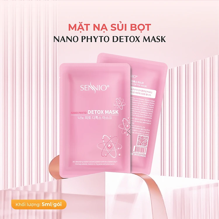 Mặt nạ sủi bọt thải độc Sennio Nano Phyto Detox Mask dưỡng ẩm trắng da gói 5ml SNO 808-1