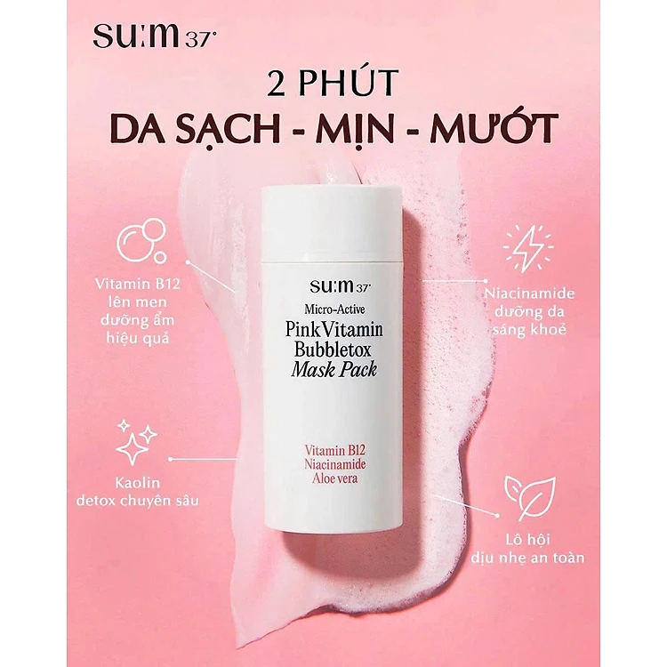 Mặt Nạ Sủi Bọt Thải Độc Sum37 Micro Active Pink Vitamin Bubbetox Mask Pack 100ml