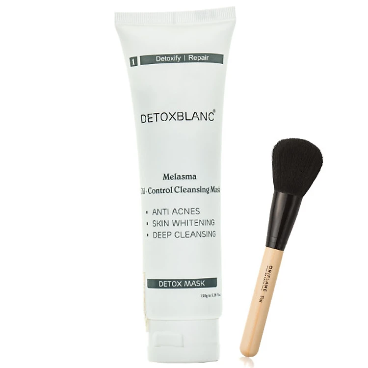 Mặt Nạ Thải Độc Và Làm Trắng Da Than Hoạt Tính Detox Mask - Thương Hiệu Detox Blanc (Pháp)- Tặng Kèm Cọ Trang Điểm Cực Xịn