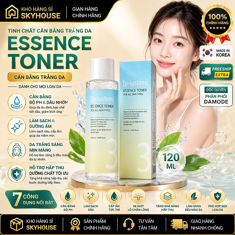 Tinh chất cân bằng dưỡng trắng da ESSENCE TONER DAMODE 120ml tinh chất cấp ẩm dịu nhẹ chính hãng