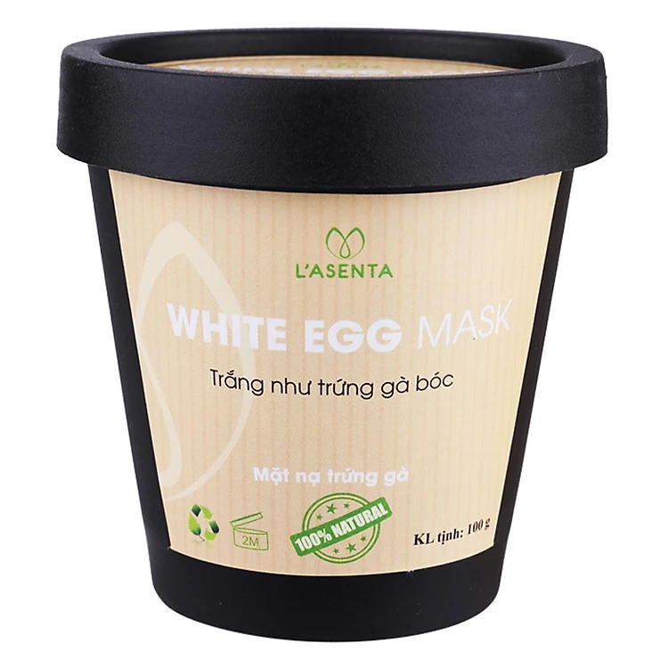 - Mặt Nạ Trứng Gà L’asenta White Egg Mask (100g) chứa Protein Albumin có tác dụng tăng cường Collagen tái tạo da, tăng tính đàn hồi giúp da trẻ hóa và trắng mịn. Sản phẩm không chứa chất bảo quản, màu và hương liệu nhân tạo.