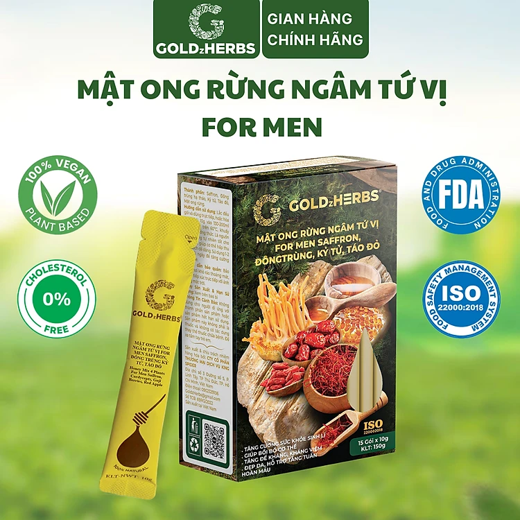 Mật ong rừng ngâm tứ vị For Men GoldzHerbs, 100% mật ong nguyên chất – Hũ 300g/ Hộp 15 gói