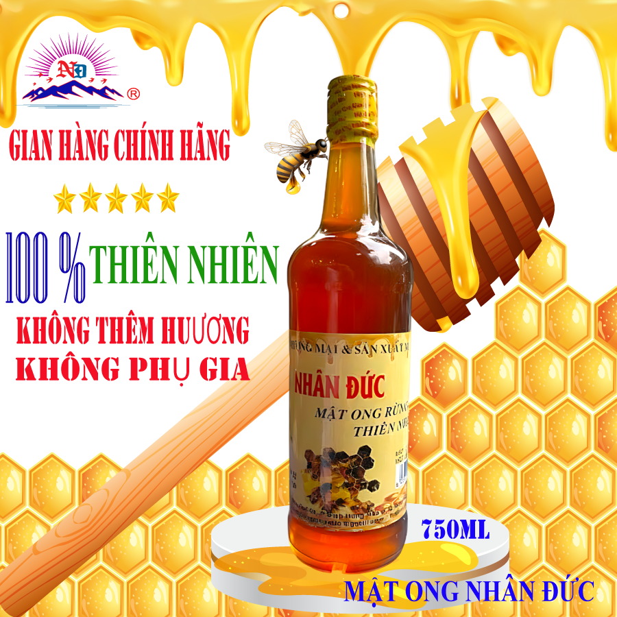 Thông tin sản phẩm: Mật ong rừng thiên nhiên 100% Nhân Đức chai thủy tinh 750ml