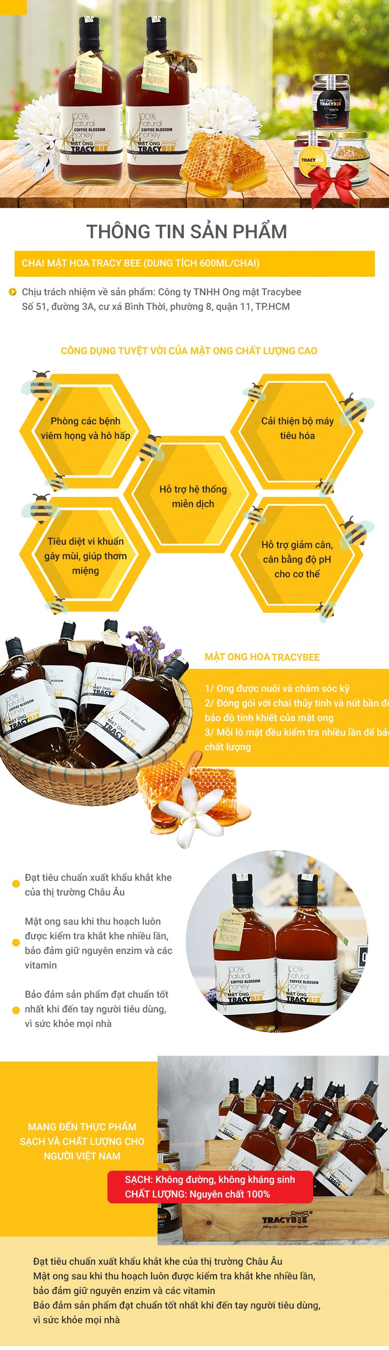 Mật ong TRACYBEE hoa cafe/chôm chôm 600 ml