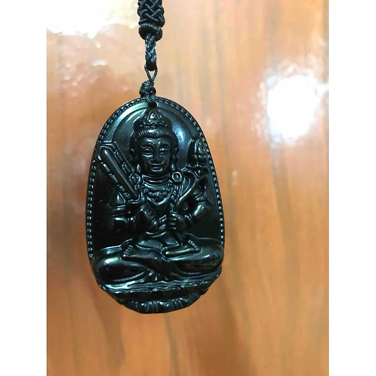 MẶT PHẬT ĐỘ MỆNH HƯ KHÔNG TẠNG ĐÁ MÃ NÃO ĐEN ĐẸP 5CM NAM TUỔI SỬU DẦN