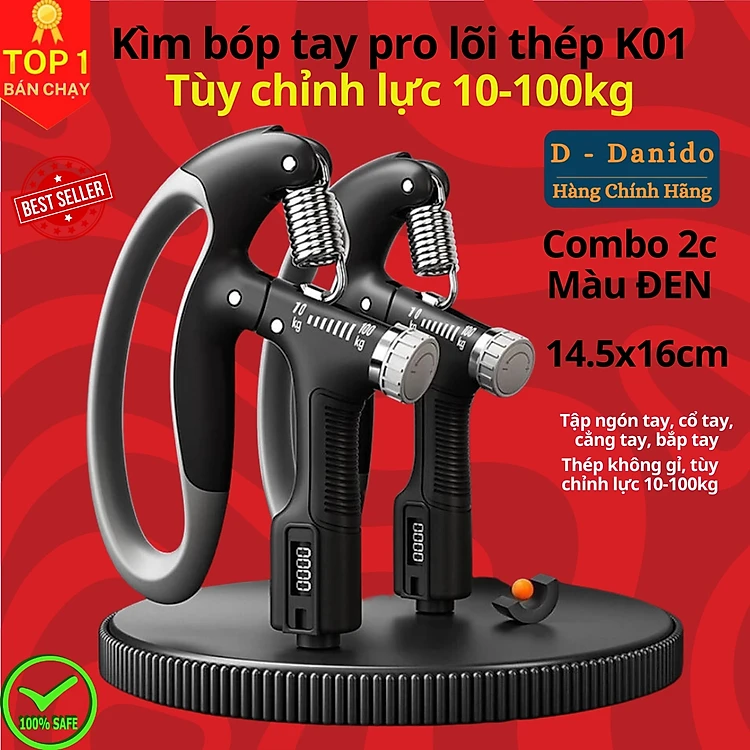 Kìm bóp tay, Kìm tập cơ tay dụng cụ tập gym tại nhà điều chỉnh lực 10-100kg có đếm số tự động D Danido