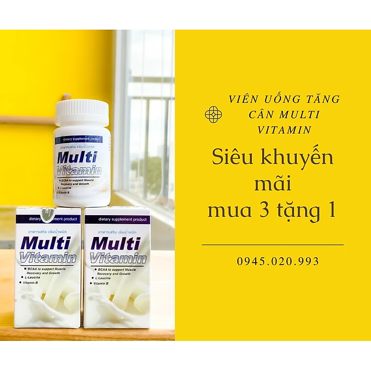 [Mẫu Mới Bản Thái Lan] Tăng Cân Multi Vitamin Plus 30 viên, Cải thiện cân nặng, hỗ trợ ăn ngủ ngon, tăng cường đề kháng