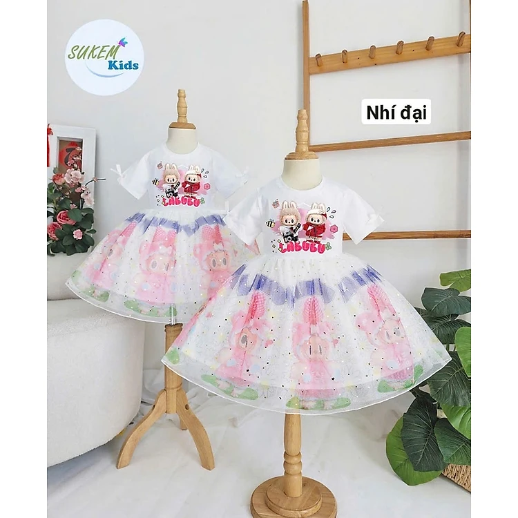 [MẪU MỚI] Đầm voan công chúa labubu cho bé gái sắc màu dự tiệc diện tết đẹp size 10-40kg hàng thiết kế cao cấp