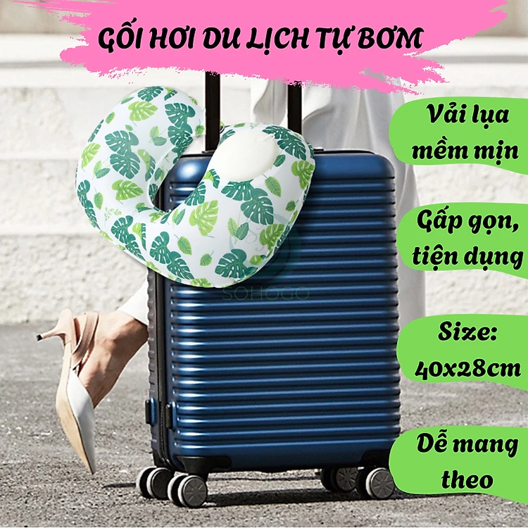 Gối kê cổ bơm hơi du lịch cao cấp Gối cổ hơi tiện lợi đi máy bay, ô tô Gối cổ chống mỏi có van bơm thông minh Gối hơi du lịch gọn nhẹ có thể gập lại- Gối kê cổ hỗ trợ giấc ngủ khi di chuyển