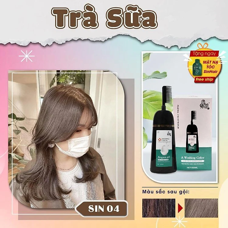 Dầu gội đổi màu tóc Sin Hair đổi màu tóc ngay từ lần đầu sử dụng, gội là đổi màu, không gây kích ứng và dám dính ra tay. Với thành phần chính là tinh chất nhân sâm giúp trẻ hoá chất tóc, nuôi dưỡng tóc từ sâu bên trong, cải thiện độ đàn hồi và óng mượt theo thời gian.