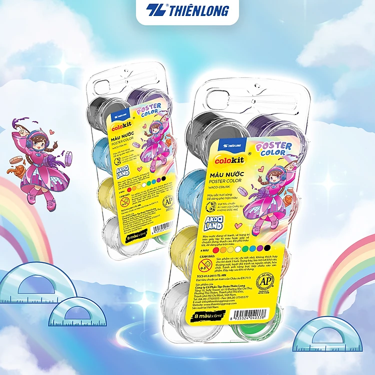 Màu nước 8 màu Thiên Long Colokit WACO-C06/AK - Dễ dàng pha trộn màu - Phiên bản Akooland