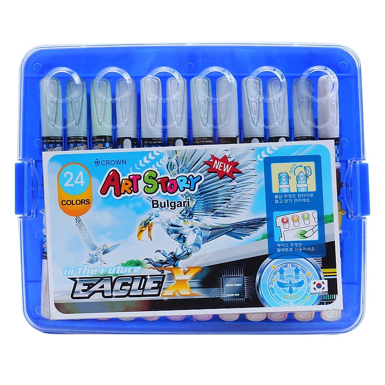 Màu Nước Crown 24 Màu - WC-2400 bao gồm 24 bút màu đa dạng, thiết kế tiện lợi cho người dùng. Màu sắc tươi sáng trung thực, dễ dàng tô vẽ theo ý thích. Ngoài ra sản phẩm còn đạt tiêu chuẩn chất lượng, đảm bảo an toàn cho sức khỏe người tiêu dùng.