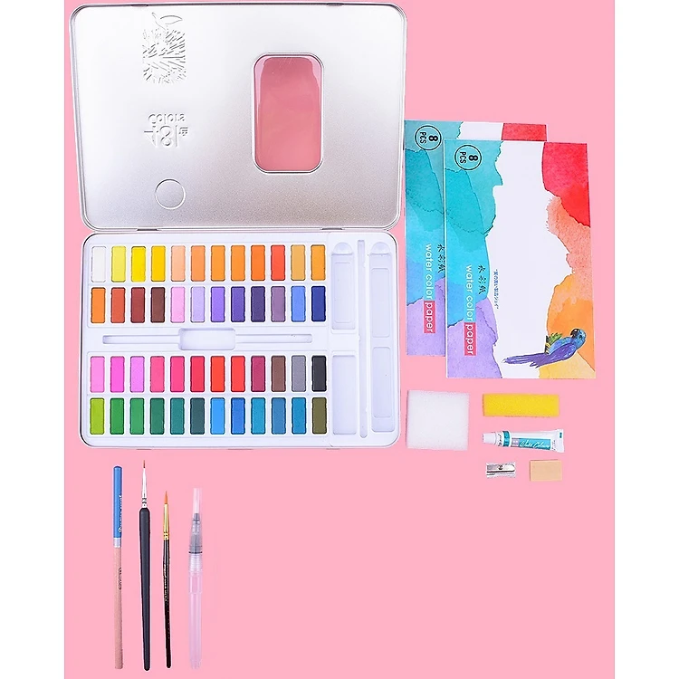 Màu nước dạng nén cao cấp set 48 màu đi kèm bộ dụng cụ dành cho vẽ tranh màu nước