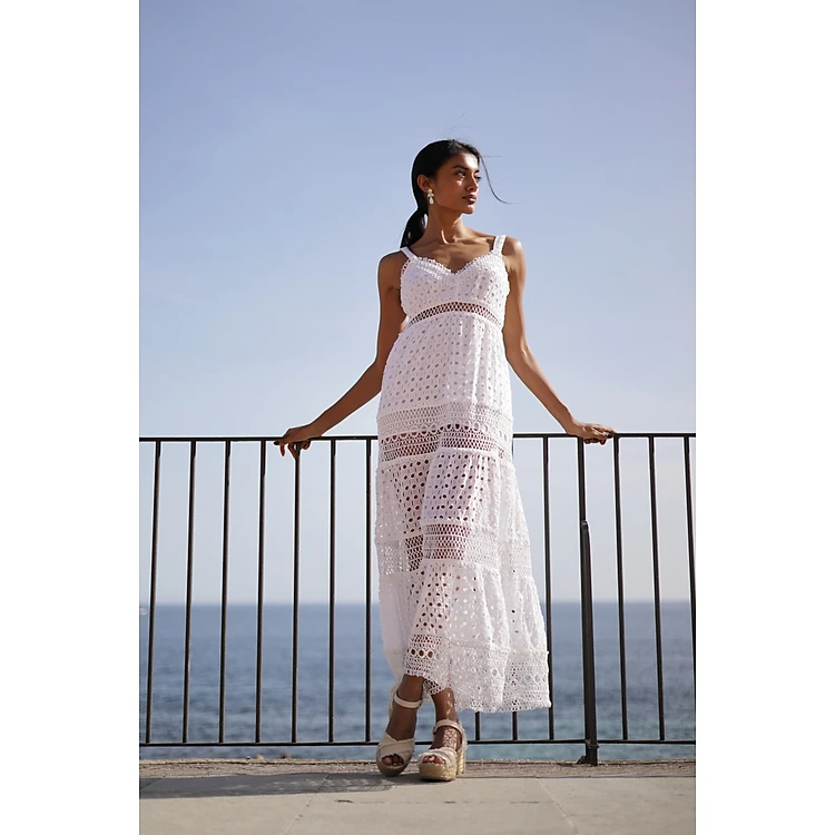 Maxi Trắng Phối Ren Cotton Cao Cấo Luna Llena