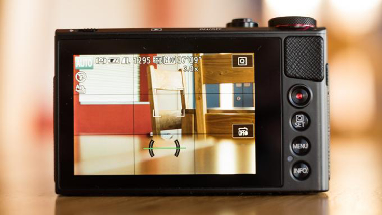 Thiết bị được trang bị màn hình cảm ứng LCD 3.0 inch với độ phân giải tới 1.04 Mps và có thiết kế nghiêng ba chiều độc đáo để mang lại lợi ích chụp ảnh từ góc cao và thấp cũng như ảnh tự chụp mặt trước.