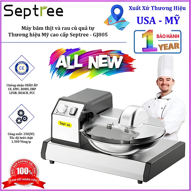 Máy băm thịt và rau củ quả tự động công nghiệp, dùng cho nhà hàng và khách sạn. Thương hiệu Mỹ cao cấp Septree - GJ805. Hàng nhập khẩu