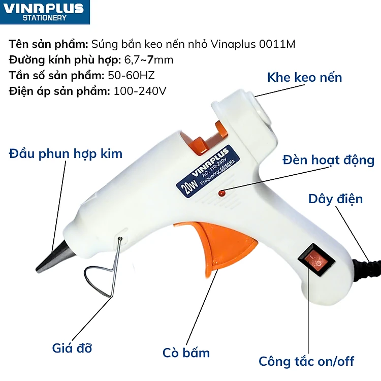 Máy Bắn Keo Nến Silicon Nóng Chảy Loại Nhỏ Công Suất 20W Hàng Chính Hãng Vinaplus