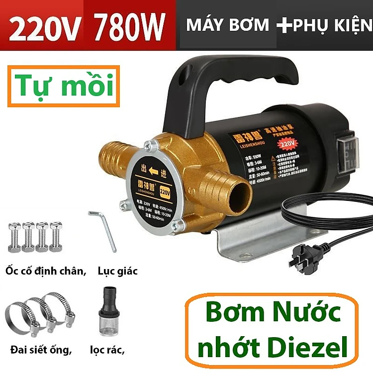 Máy bơm dầu & nước điện 220V công suất 780W máy bơm tự mồi; bơm nhớt, dầu ăn, dầu thải - Hàng nhập khẩu