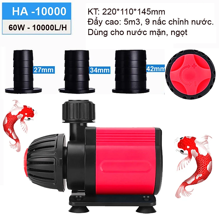 Máy bơm HA 10000 ( 60W - 10000L/H) lõi trục gốm, 9 nấc chỉnh nước dùng cho bể cá, hồ cá, hòn non bộ, sinh hoạt - Máy bơm chìm cao cấp