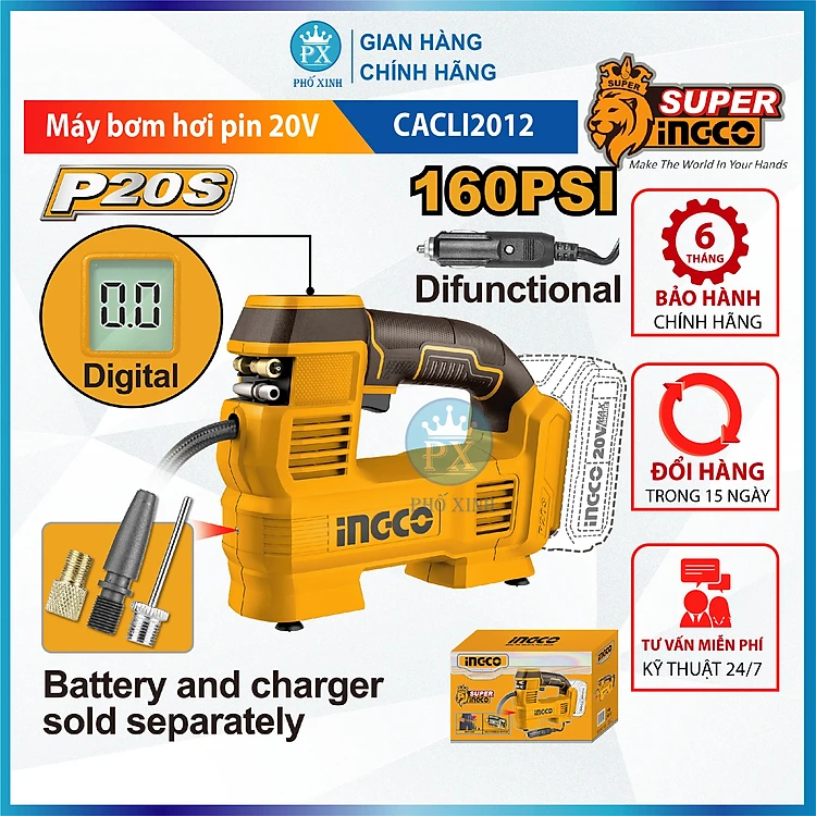 Máy bơm hơi pin 20V CACLI2012 chưa bao gồm pin và sạc