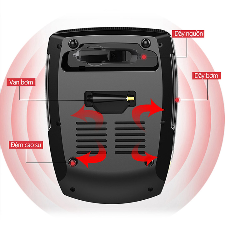 ► Tích hợp vòi bơm, đầu bơm và đồng hồ đo áp suất lốp giúp việc kiểm tra từng lốp xe của bạn đơn giản hơn. Mặt trước có thiết kế đèn LED siêu sáng cho phép sử dụng trong điều kiện thiếu ánh sáng.