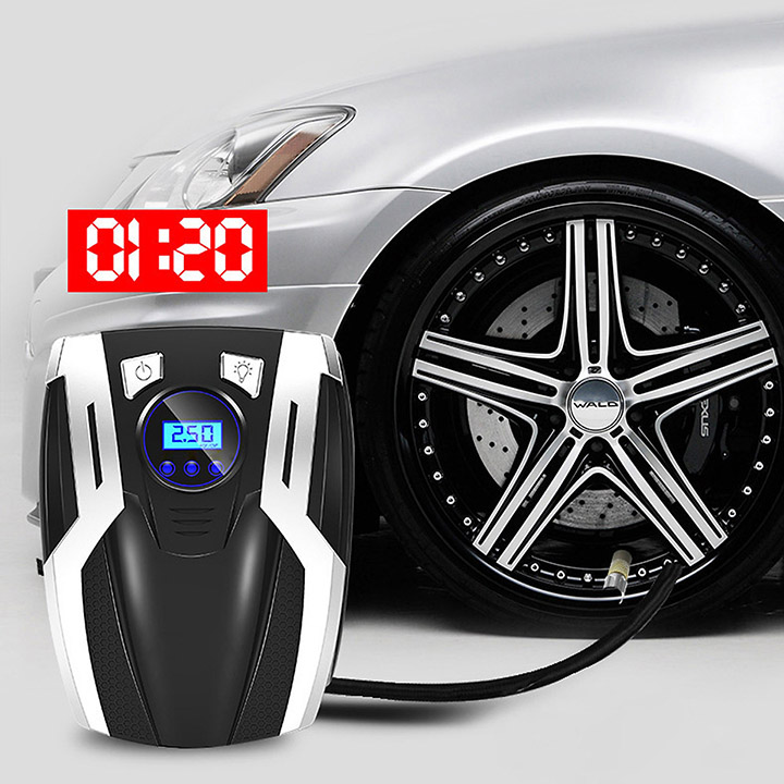 Máy Bơm Lốp Ô Tô, Xe Hơi Đa Năng 12V- Màn Hình Điện Tử Thông Minh, Cài Đặt Số Cân Và Tự Ngắt Khi Đủ Áp.