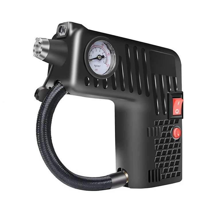 - Được tích hợp vòi bơm, đầu bơm và đồng hồ đo áp suất phía trên máy dùng để theo dõi thông số áp suất hiển thị, để bạn biết được khi nào lốp đã đủ hơi.