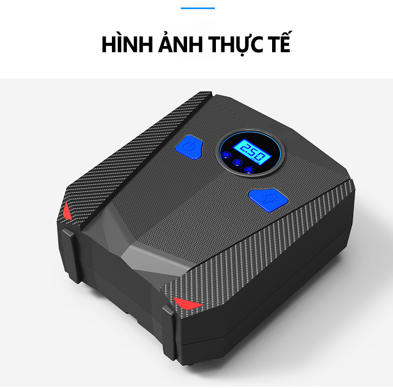 - Bơm hoạt động bằng nguồn điện 12V lấy trực tiếp từ ổ sạc xe hơi, tiện lợi khi sử dụng. Thời gian bơm căng lốp xe khoảng 3-5 phút.