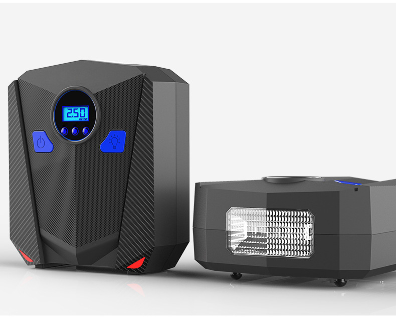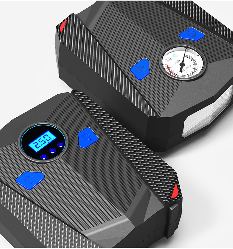 - Tích hợp vòi bơm, đầu bơm và đồng hồ đo áp suất lốp giúp việc kiểm tra từng lốp xe của bạn đơn giản hơn. Mặt trước có thiết kế đèn LED siêu sáng cho phép sử dụng trong điều kiện thiếu ánh sáng.
