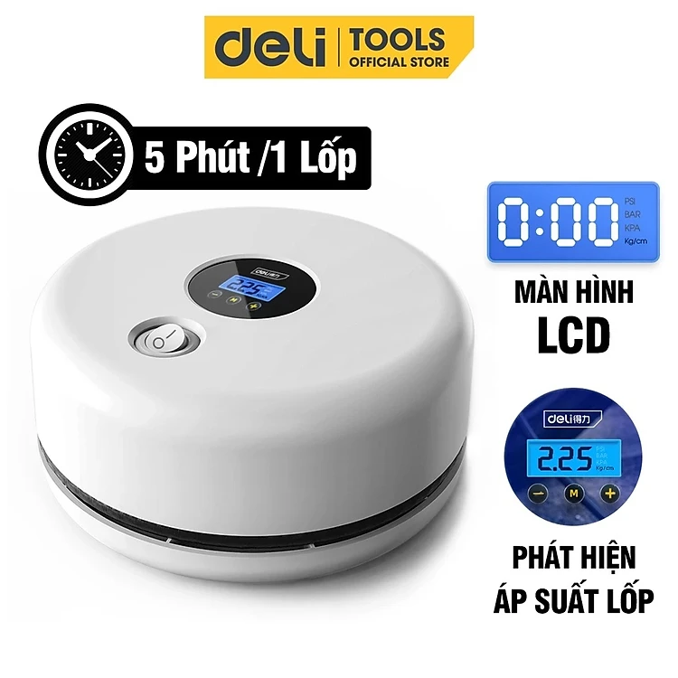 Máy Bơm Lốp Xe Ô Tô Deli Chính Hãng - Bơm Nhanh, Phát Hiện Áp Suất Lốp Thời Gian Thực, Màn Hình LCD - Nhỏ Gọn - DL880180