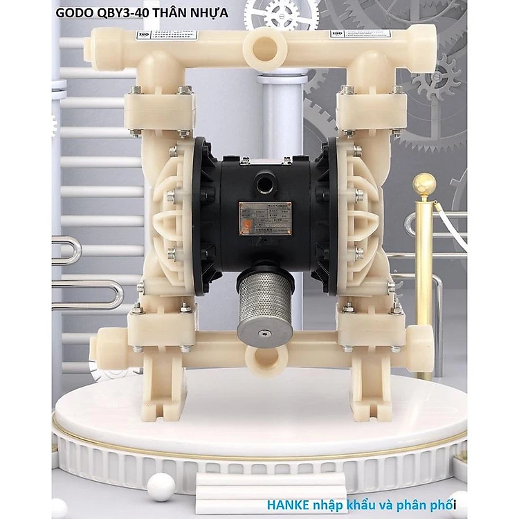 Máy bơm màng khí nén thân nhựa PP, GODO QBY3-40STFF