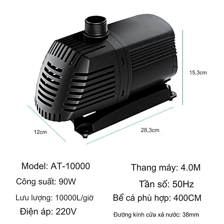 Máy bơm nước ATMAN AT10000 90W, 10000L/Hr lọc nước hồ cá koi, bơm sinh hoạt, tiểu cảnh, đài phun nước cao cấp