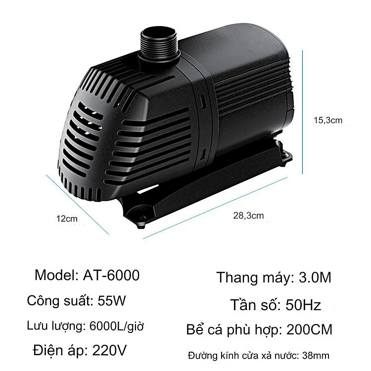 Máy bơm nước ATMAN AT3000 35W, 3000L/Hr lọc nước hồ cá koi, bơm sinh hoạt, tiểu cảnh, đài phun nước cao cấp