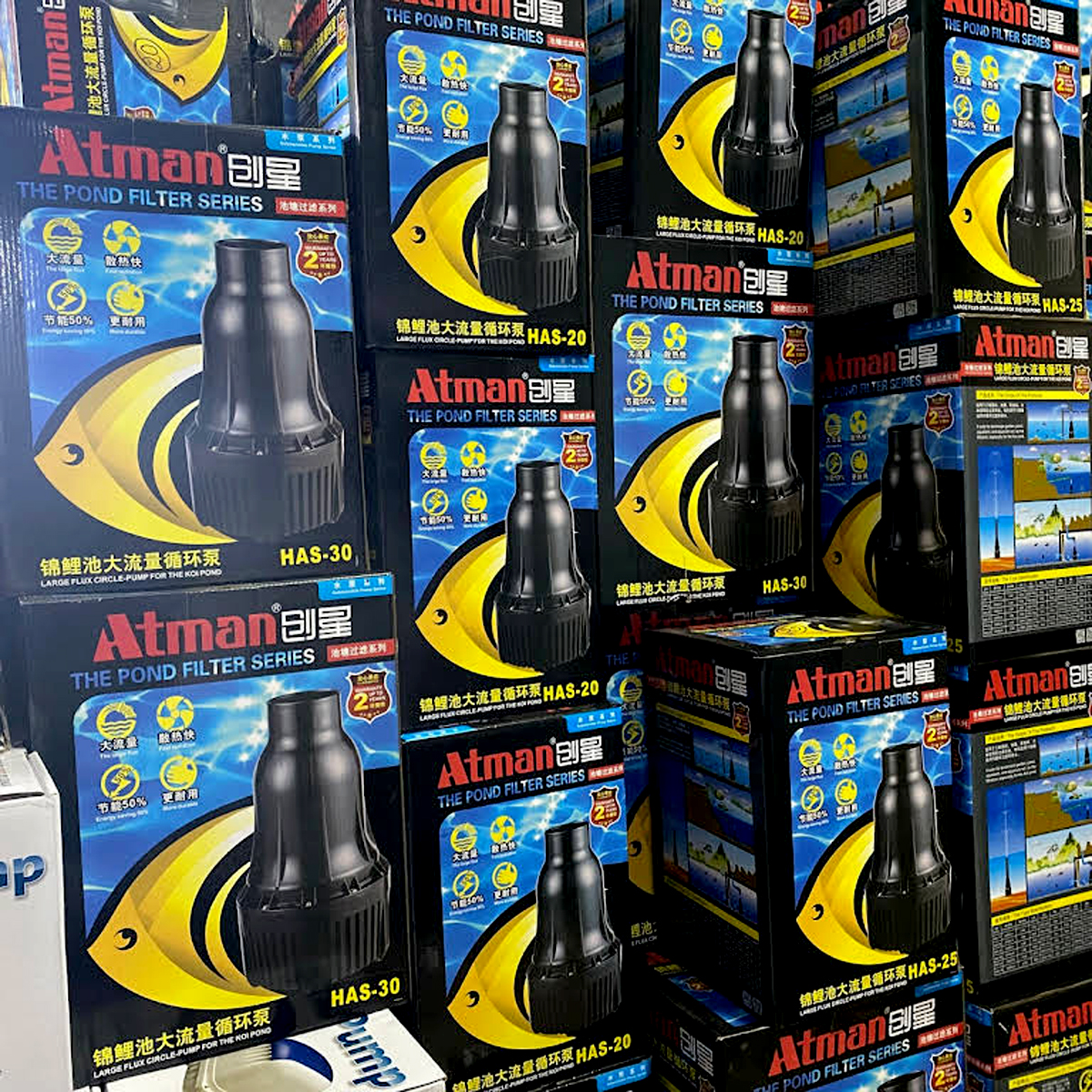Máy bơm nước hồ cá KOI ATMAN HAS-20 HAS-25 HAS-30 cao cấp, công suất mạnh, tiết kiệm điện. Bảo hành uy tín