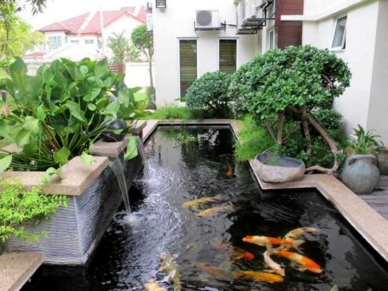 Để toàn bộ máy bơm chìm hồ Koi ngập trong nước