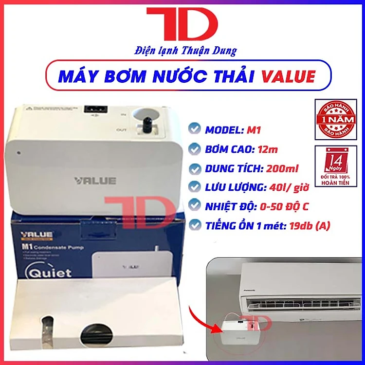 Máy bơm xả nước thải máy lạnh điều hoà Value hàng chính hãng, loại S1 dùng cho máy âm trần