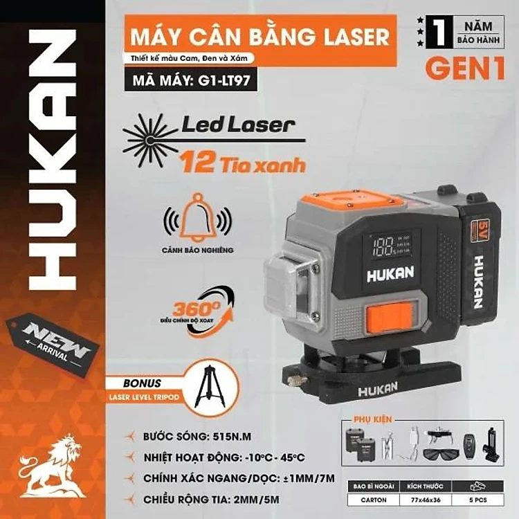 MÁY CÂN BẰNG LASER 5 TIA XANH G1-LT97 HUKAN -HÀNG CHÍNH HÃNG