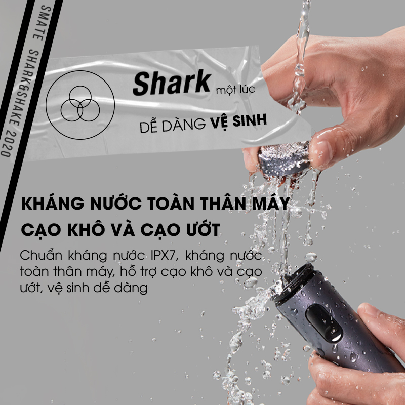 Chuẩn kháng nước IPX7, kháng nước toàn thân máy, hỗ trợ cạo khô và cạo ướt, vệ sinh dễ dàng.