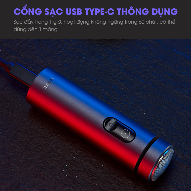 Sạc đầy trong 1 giờ, hoạt động không ngừng trong 60 phút, có thể dùng đến 1 tháng.