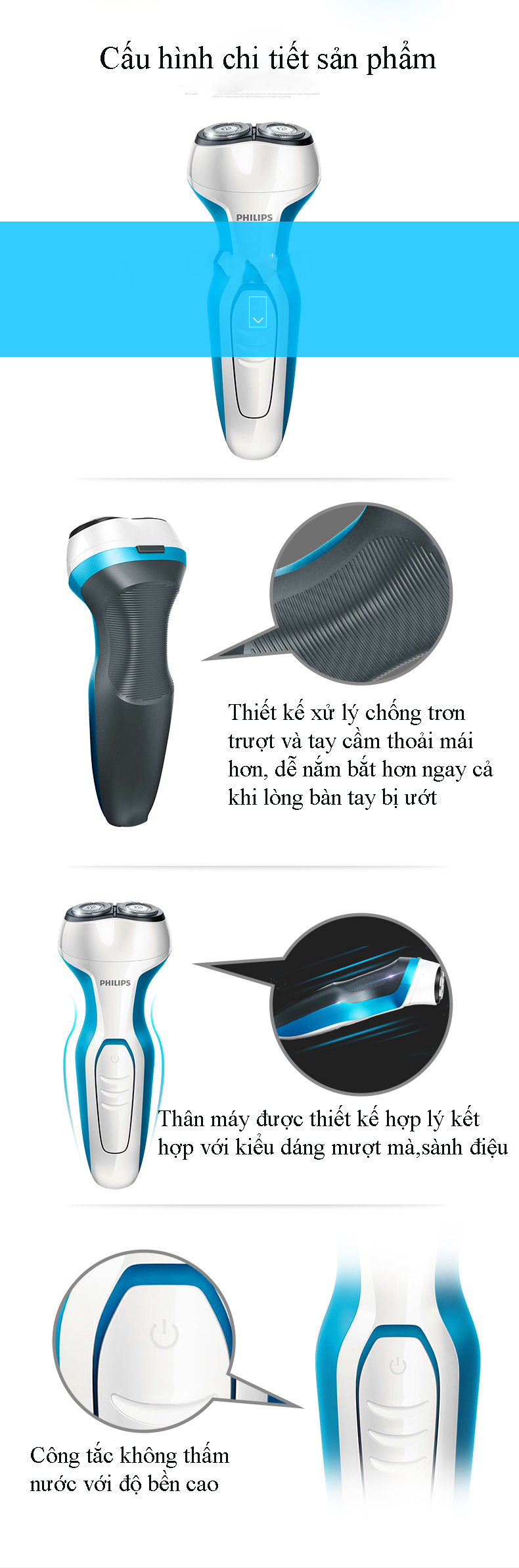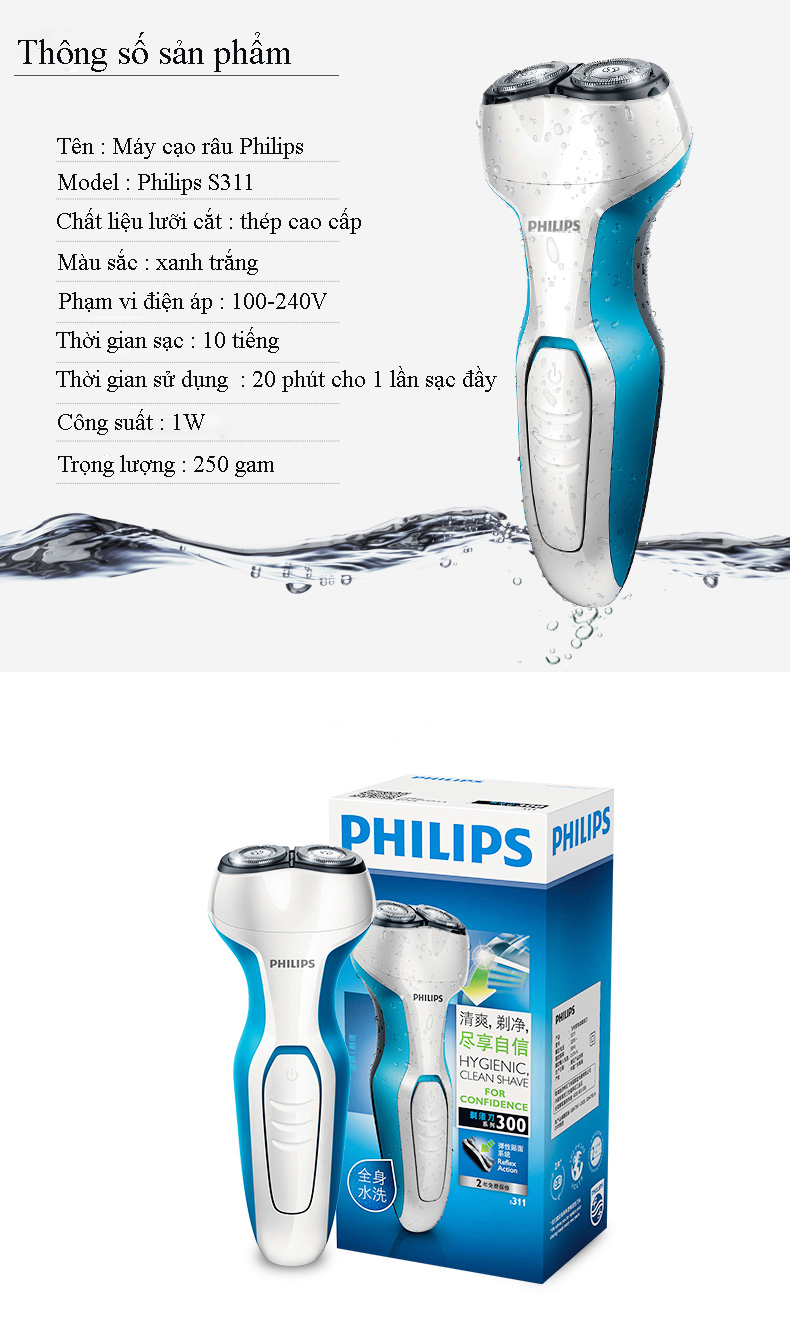 Đặc biệt không sợ nước: bạn có thể thoải mái cạo râu trong môi trường nước mà không lo chập điện.